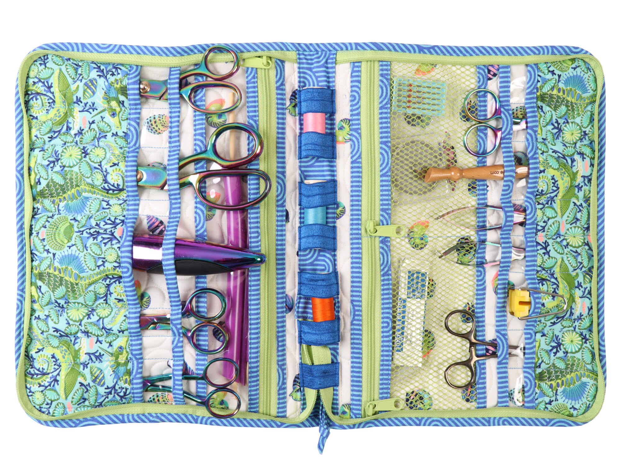 Designed in collaboration with popular fabric designer, Tula Pink, the Tool Case will hold Tula's hardware collection or can be customized to fit rotary cutters, rulers, and tools from most manufacturers.