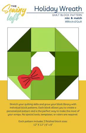 Part of the best-selling Blocks2Quilt Collection, the Holiday Wreath Quilt Block is a seasonal standout that’s ideal for in-store displays, holiday bundles, and festive workshops. Designed for confident beginners, this scrap-friendly block is easy to sew and perfect for your customers’ holiday sewing projects. No special tools, templates or rulers required.