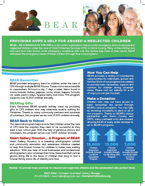 Any Love Bugs brought to our shop will be given to Bear Resouces in Houston.