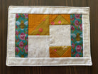 Brighten your table with this modern mini quilt! This mug rug measures approximately 6” x 9” and is made with vibrant Alison Glass fabrics. The bold colors and playful design make it perfect for holding your favorite mug and a sweet treat.