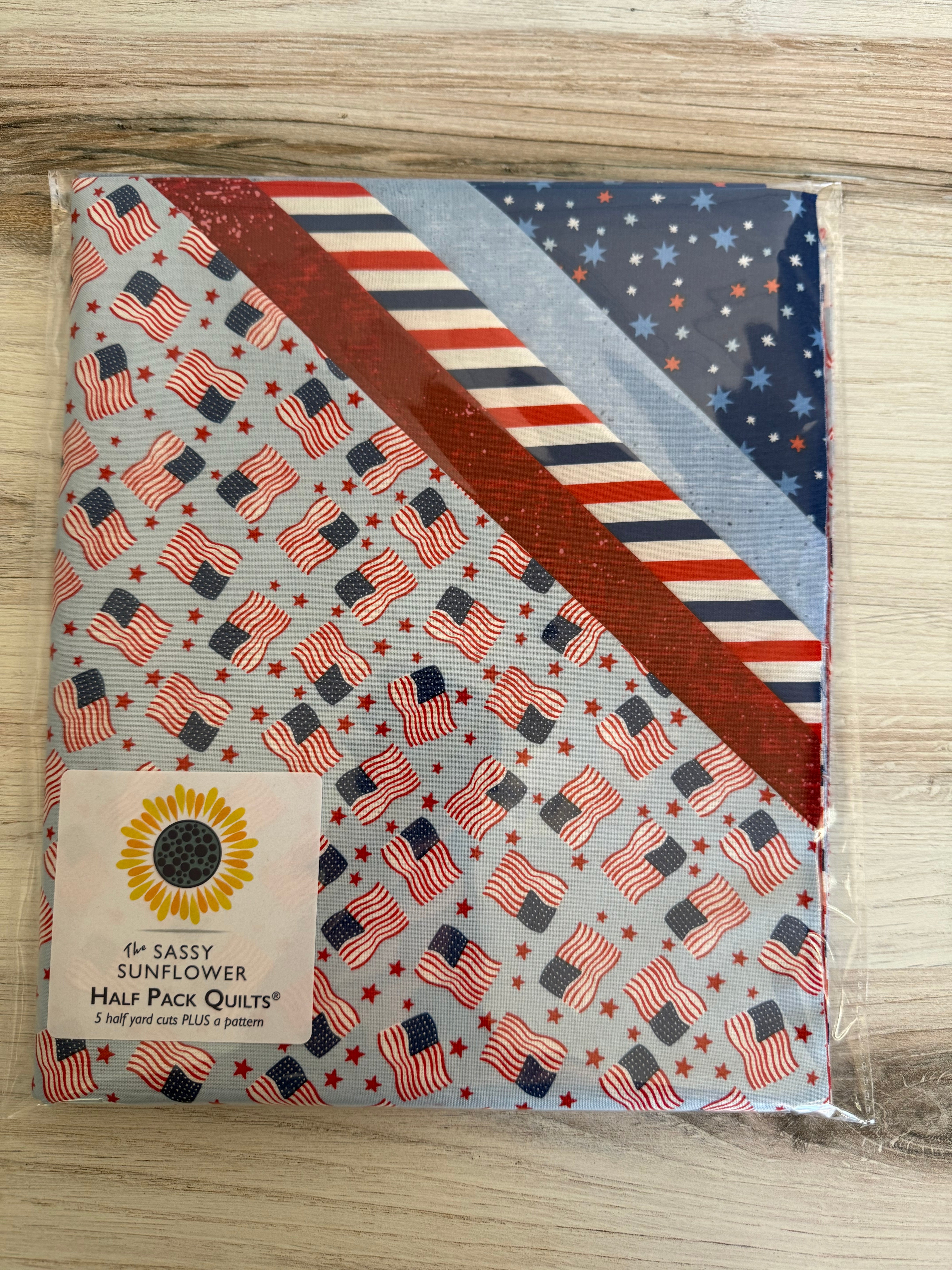 Unleash your creative side with Sassy Sunflower Half Pack Quilts. Choose from a variety of patterns and play with designs to create quick and colorful quilts. With this Kit, it is sure to make your room feel so patriotic in the Perfect Way! (Sunflower not included ;)