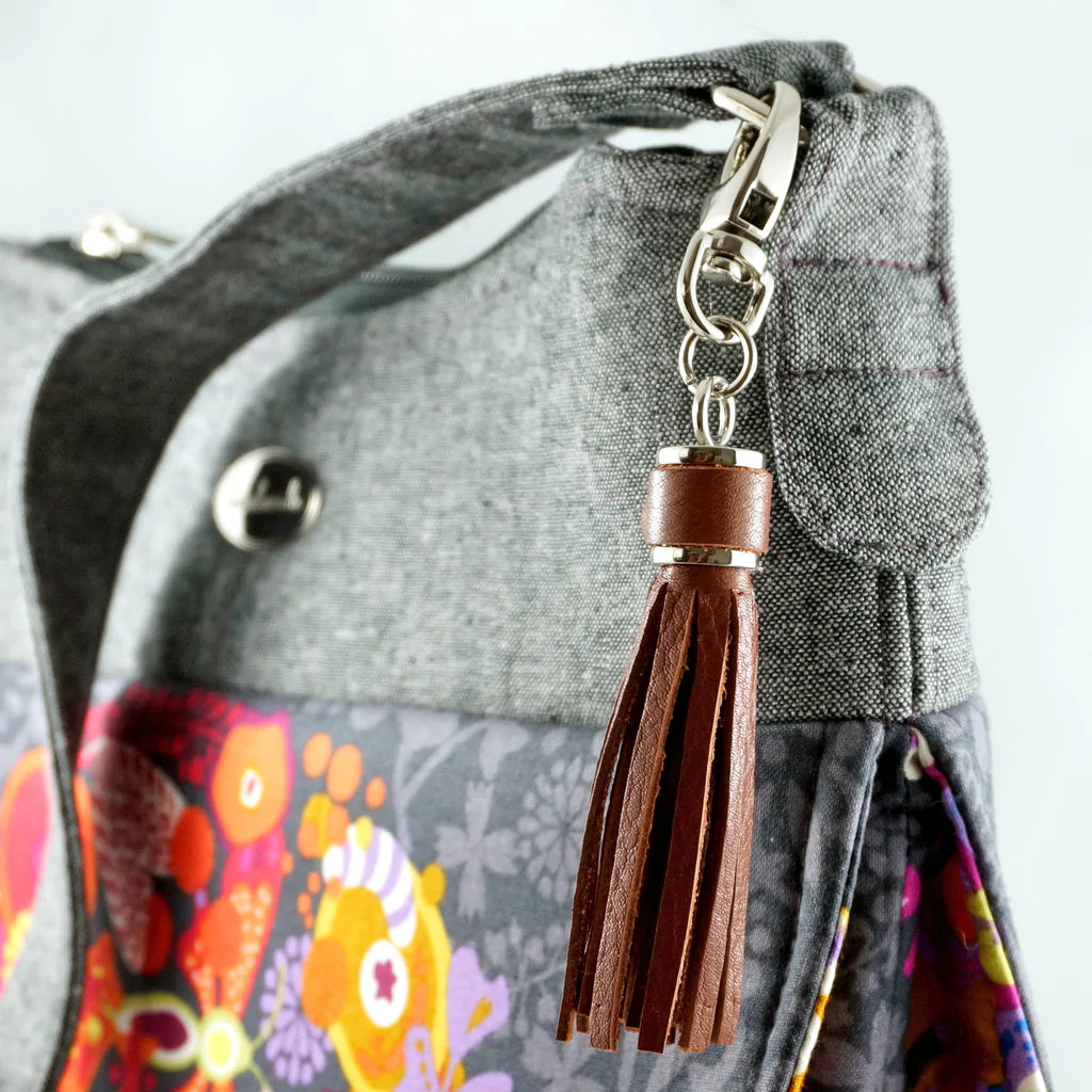 Swing one of these tassel caps from your bag strap ring, and bling up your handmade bag, tote or other DIY project. Use your own leather or vinyl to create a tassel that complements your bag perfectly.