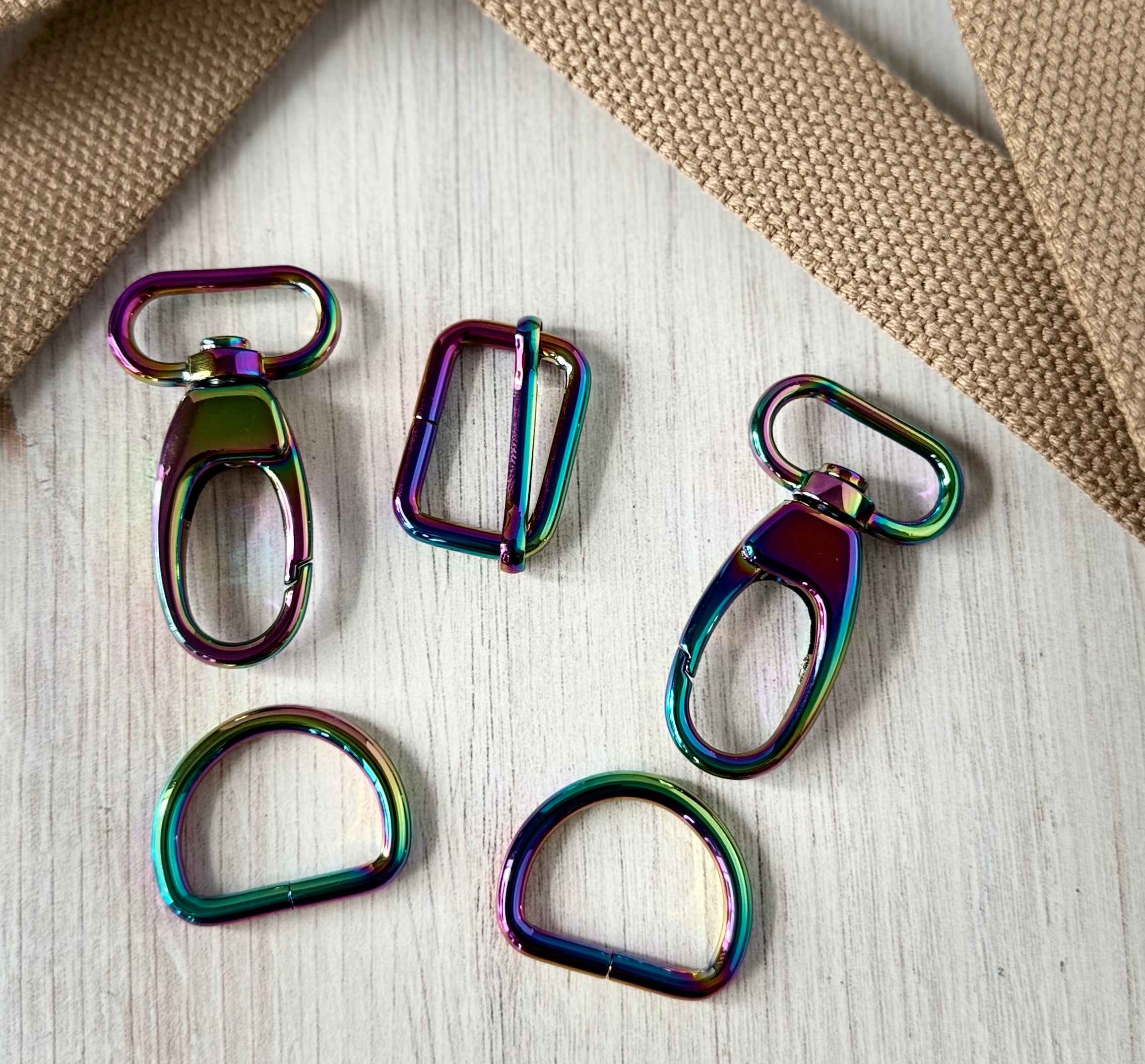 - 2 x 1" (25 mm) Flat Profile Swivel Hooks (Except Rainbow, which is the Designer Style) - 1" (25 mm) wide x (2 1/4") 57 mm long