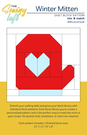Add a dose of cozy charm to your shop with the Mitten Quilt Block, a fun and festive addition to the Blocks2Quilt Collection. This seasonal favorite is ideal for winter-themed displays, holiday workshops, or kitted projects that help fabrics fly off the shelves. Each pattern includes easy-to-follow illustrated instructions and cutting guides for 6" and 12" finished blocks, making it accessible for all skill levels. Printed in a compact 5.5" x 8.5" booklet format, it’s designed for efficient display and effortless bundling with holiday prints or pre-cuts.